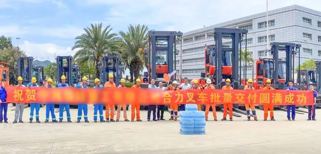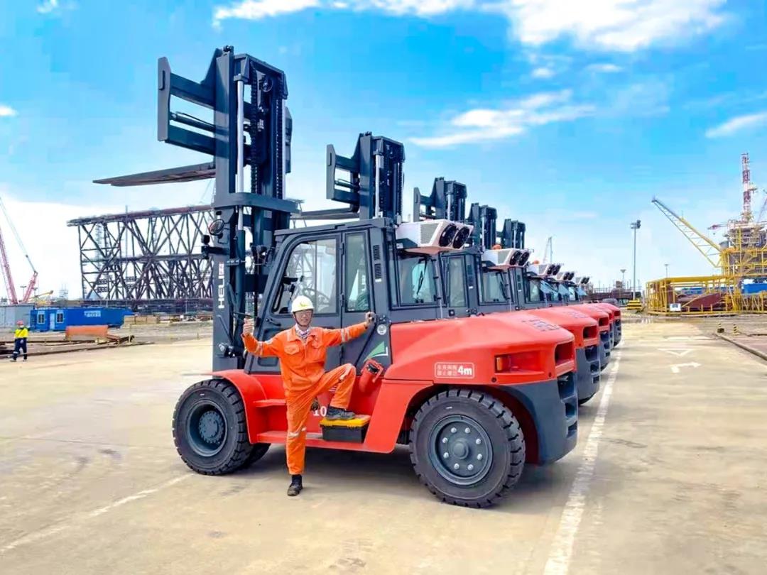 6月初,近40臺合力叉車順利交付廣東某大型海洋重工企業(yè)!