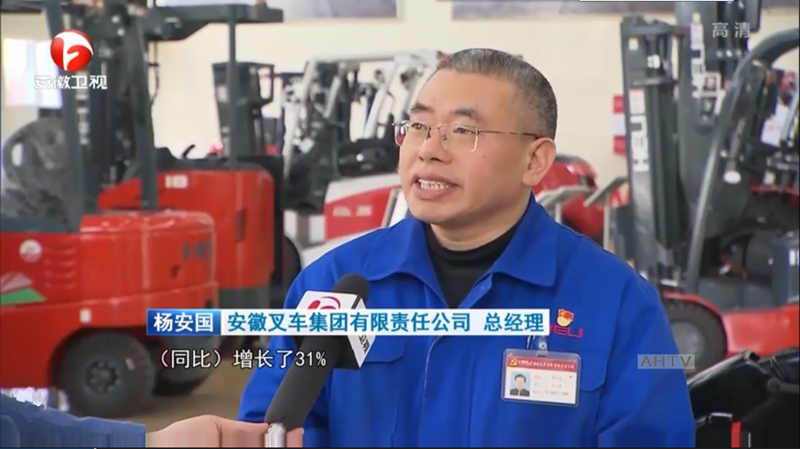 記者:我身邊是安徽叉車集團(tuán)今年最新研發(fā)的一款新能源電動(dòng)叉車,這種車充分體現(xiàn)了個(gè)性化定制的特點(diǎn),比如說,它的外觀顏色從原先的紅色變成了現(xiàn)在的黃色,同時(shí)還增加了藍(lán)光警示燈等一系列個(gè)性化的設(shè)計(jì),由于更加符合客戶的需求,這種車今年一季度的產(chǎn)銷量已經(jīng)突破了1000臺(tái),占公司整個(gè)電動(dòng)叉車產(chǎn)銷量的6成以上。