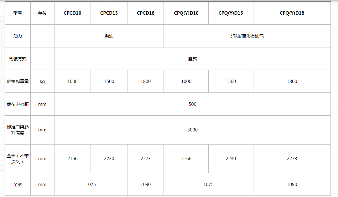 G系列 1-1.8噸柴油/汽油/液化氣平衡重式 叉車