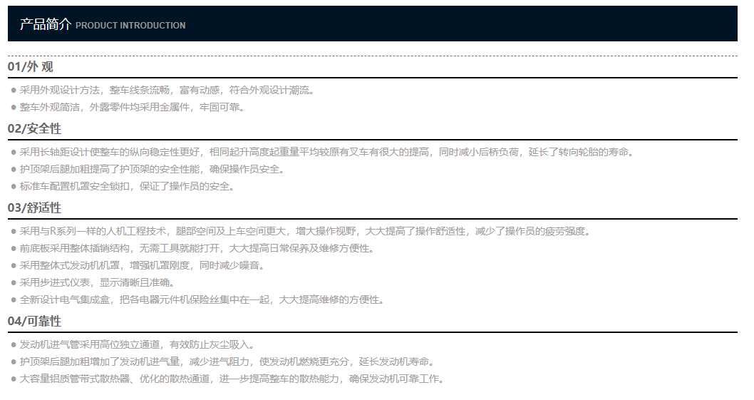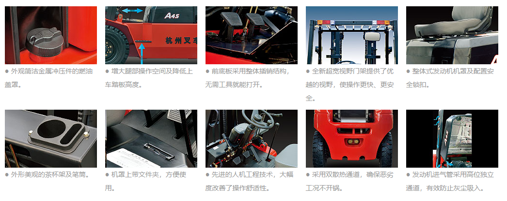 ●A系列是杭叉采用先進(jìn)技術(shù)、在原有產(chǎn)品基礎(chǔ)上,自主開發(fā)的全新系列內(nèi)燃平衡重式叉車,通過(guò)對(duì)外觀造型、安全性、舒適性及可靠性的全面改進(jìn),使整車性能較原有產(chǎn)品有了大幅度提高,采用的發(fā)動(dòng)機(jī)全部滿足GB 20891-2014第三階段排放要求。